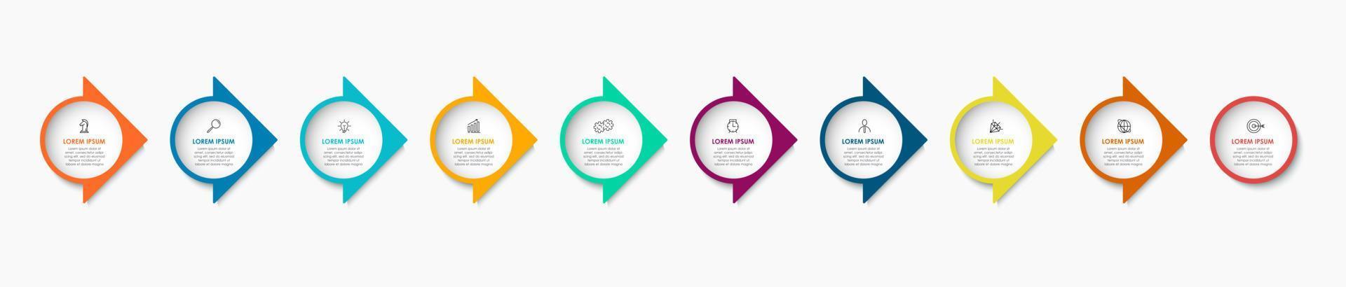 Minimal Business Infographics template. Timeline with 10 steps, options and marketing icons .Vector linear infographic with two circle conected elements. Can be use for presentation. Pro Vector