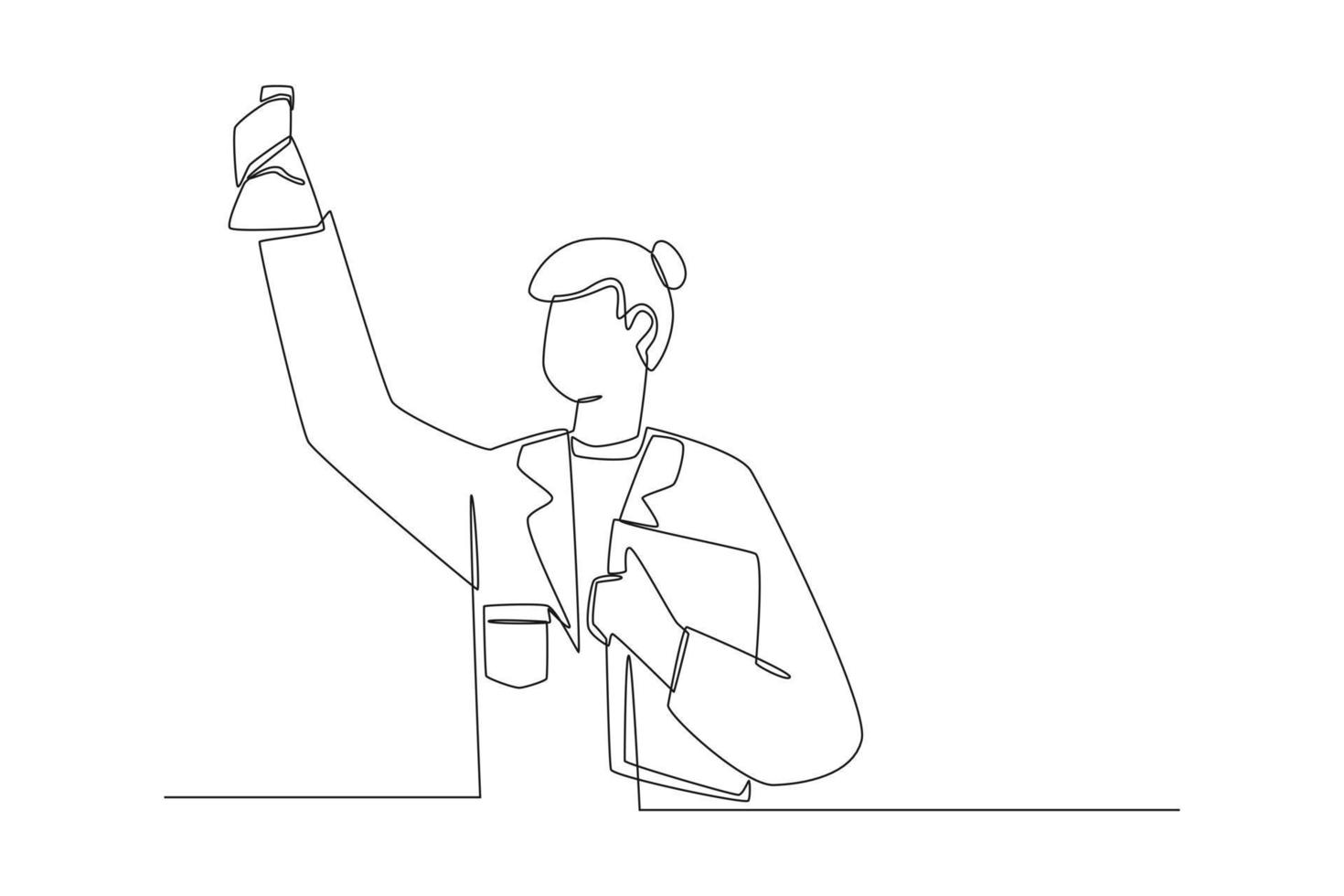Simple continuous line drawing girl student seeing flask for experiment in science laboratory. Subjects concept in school and university. Continuous line draw design graphic vector illustration.