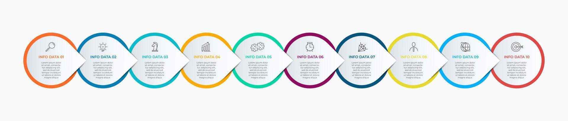 Minimal Business Infographics template. Timeline with 10 steps, options and marketing icons .Vector linear infographic with two circle conected elements. Can be use for presentation. Pro Vector