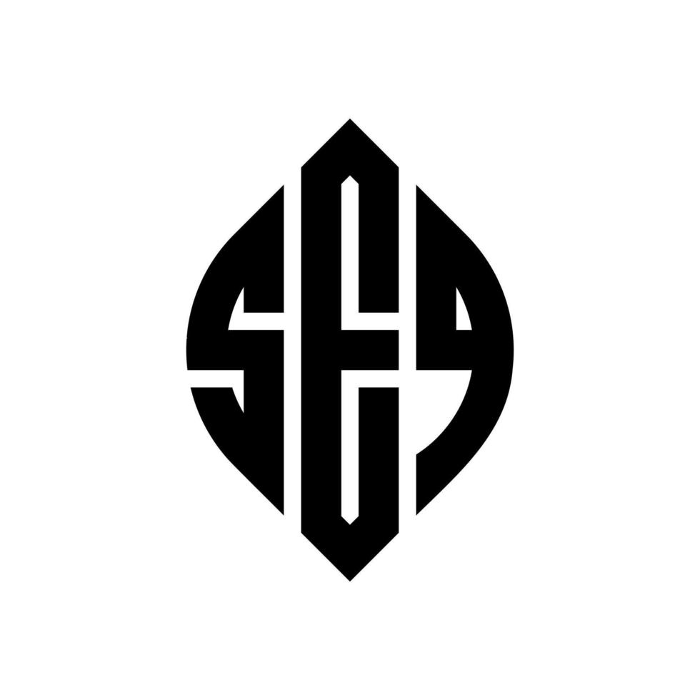 SEQ circle letter logo design with circle and ellipse shape. SEQ ellipse letters with typographic style. The three initials form a circle logo. SEQ Circle Emblem Abstract Monogram Letter Mark Vector. Pro Vector