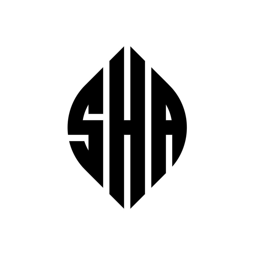 SHA circle letter logo design with circle and ellipse shape. SHA ellipse letters with typographic style. The three initials form a circle logo. SHA Circle Emblem Abstract Monogram Letter Mark Vector. Pro Vector