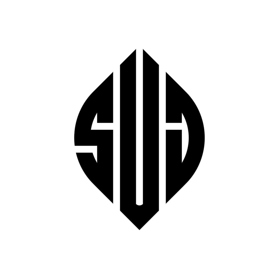 SUJ circle letter logo design with circle and ellipse shape. SUJ ellipse letters with typographic style. The three initials form a circle logo. SUJ Circle Emblem Abstract Monogram Letter Mark Vector. Pro Vector