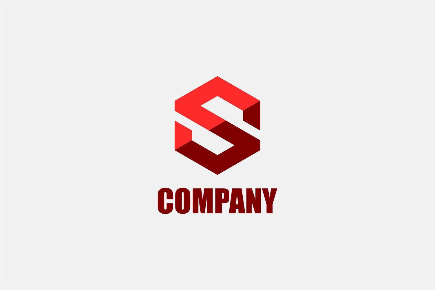 Vector logo element with initial S in hexagon or cube pattern. Usable for general business logo