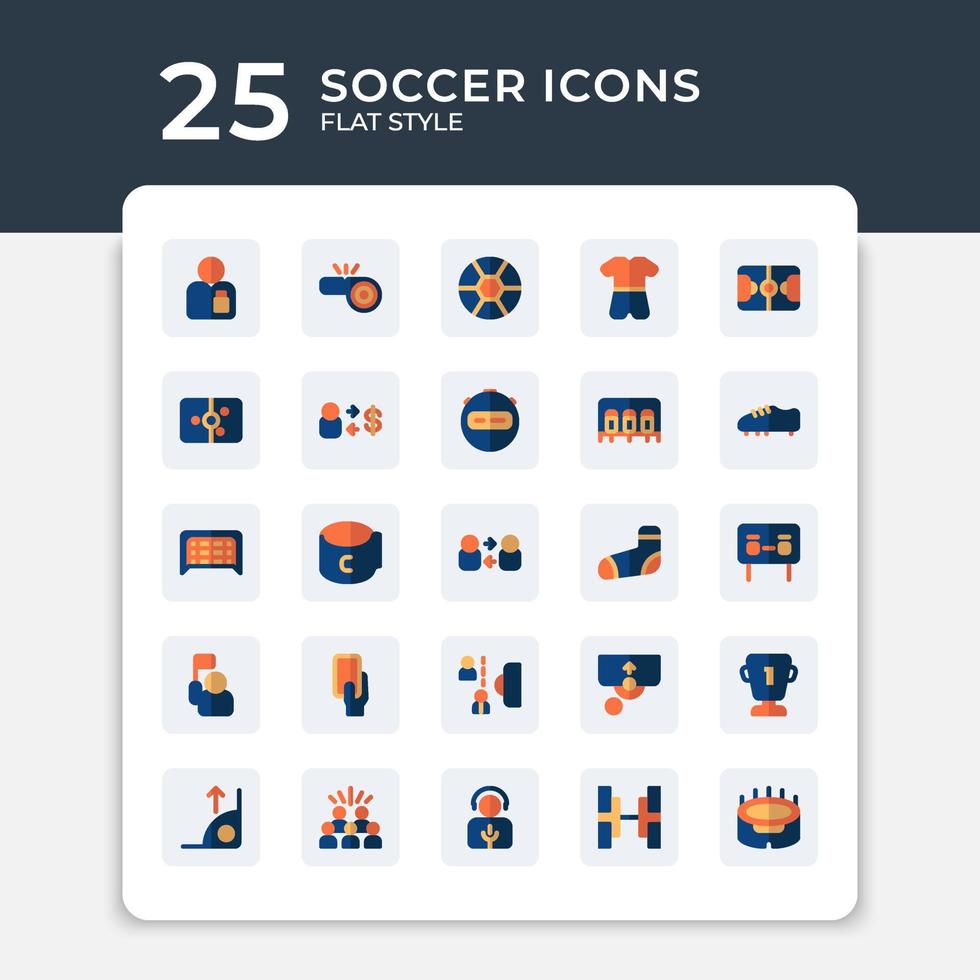 Editable vector pack of soccer flat icons. Premium quality symbols. Collection of vector icons for concept, web graphics and mobile app with flat style. Simple flat signs.