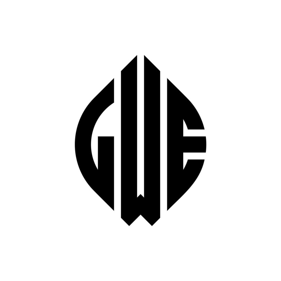LWE circle letter logo design with circle and ellipse shape. LWE ellipse letters with typographic style. The three initials form a circle logo. LWE Circle Emblem Abstract Monogram Letter Mark Vector. Pro Vector