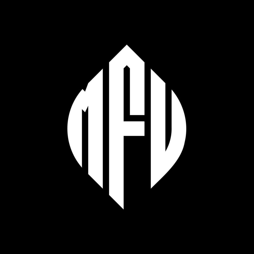 MFU circle letter logo design with circle and ellipse shape. MFU ellipse letters with typographic style. The three initials form a circle logo. MFU Circle Emblem Abstract Monogram Letter Mark Vector. Pro Vector