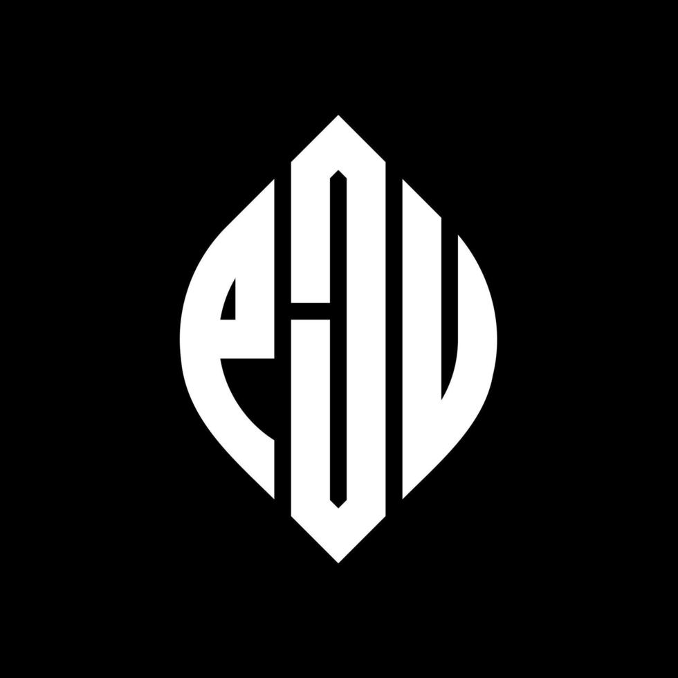 PJU circle letter logo design with circle and ellipse shape. PJU ellipse letters with typographic style. The three initials form a circle logo. PJU Circle Emblem Abstract Monogram Letter Mark Vector. Pro Vector