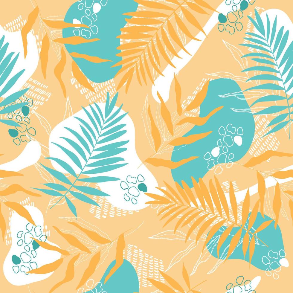 Summer trendy abstract square seamless pattern with leaves. Vector background. Pro Vector