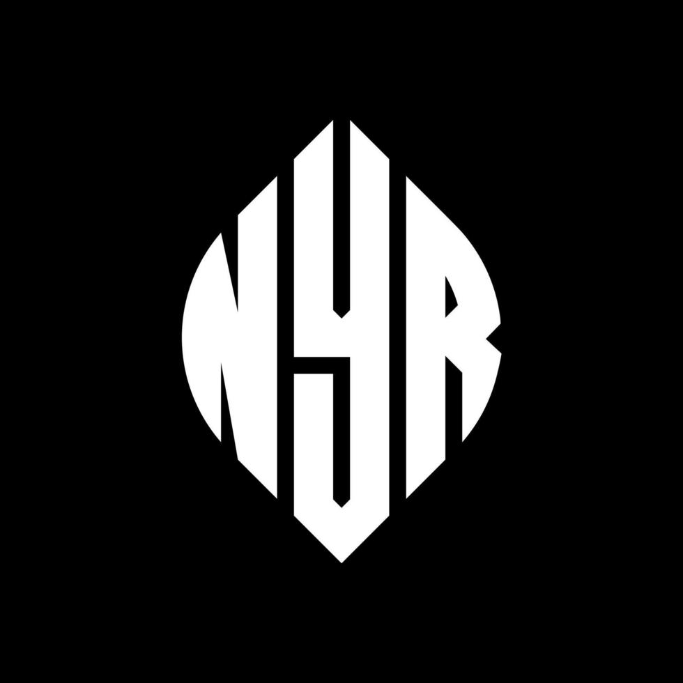 NYR circle letter logo design with circle and ellipse shape. NYR ellipse letters with typographic style. The three initials form a circle logo. NYR Circle Emblem Abstract Monogram Letter Mark Vector. Pro Vector