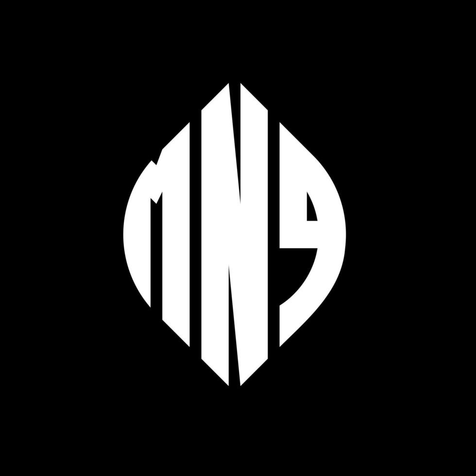 MNQ circle letter logo design with circle and ellipse shape. MNQ ellipse letters with typographic style. The three initials form a circle logo. MNQ Circle Emblem Abstract Monogram Letter Mark Vector. Pro Vector