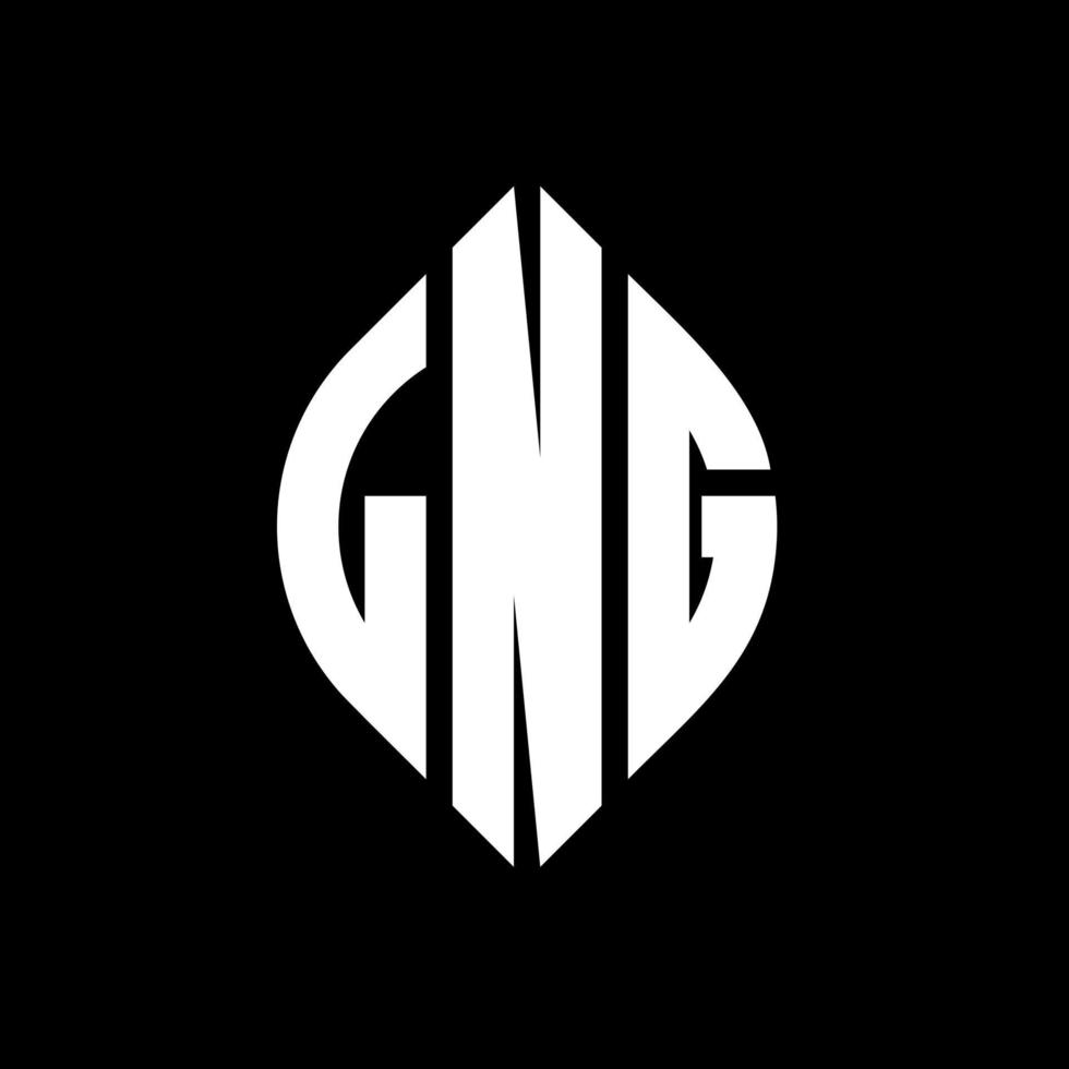 LNG circle letter logo design with circle and ellipse shape. LNG ellipse letters with typographic style. The three initials form a circle logo. LNG Circle Emblem Abstract Monogram Letter Mark Vector. Pro Vector