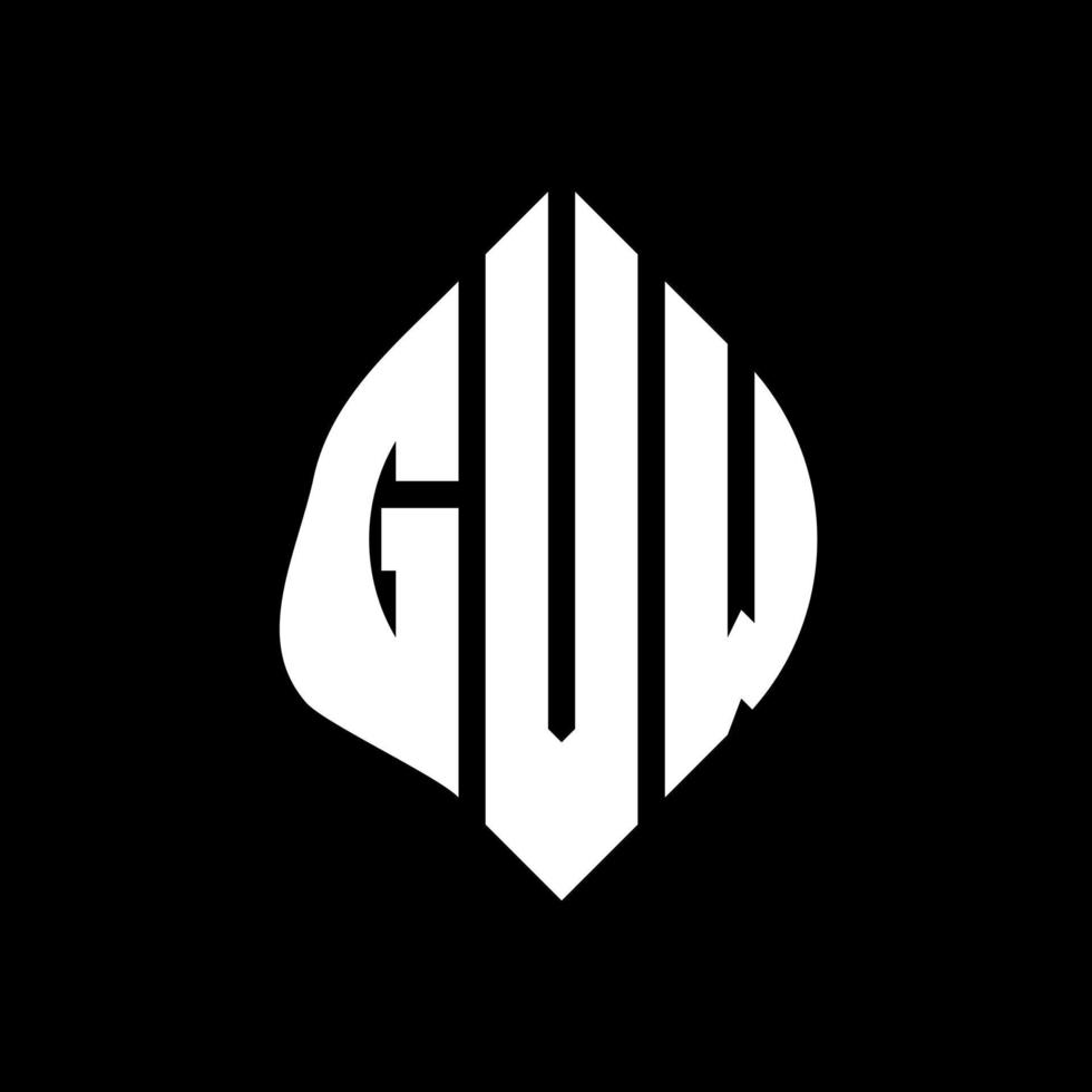 GUW circle letter logo design with circle and ellipse shape. GUW ellipse letters with typographic style. The three initials form a circle logo. GUW Circle Emblem Abstract Monogram Letter Mark Vector. Pro Vector