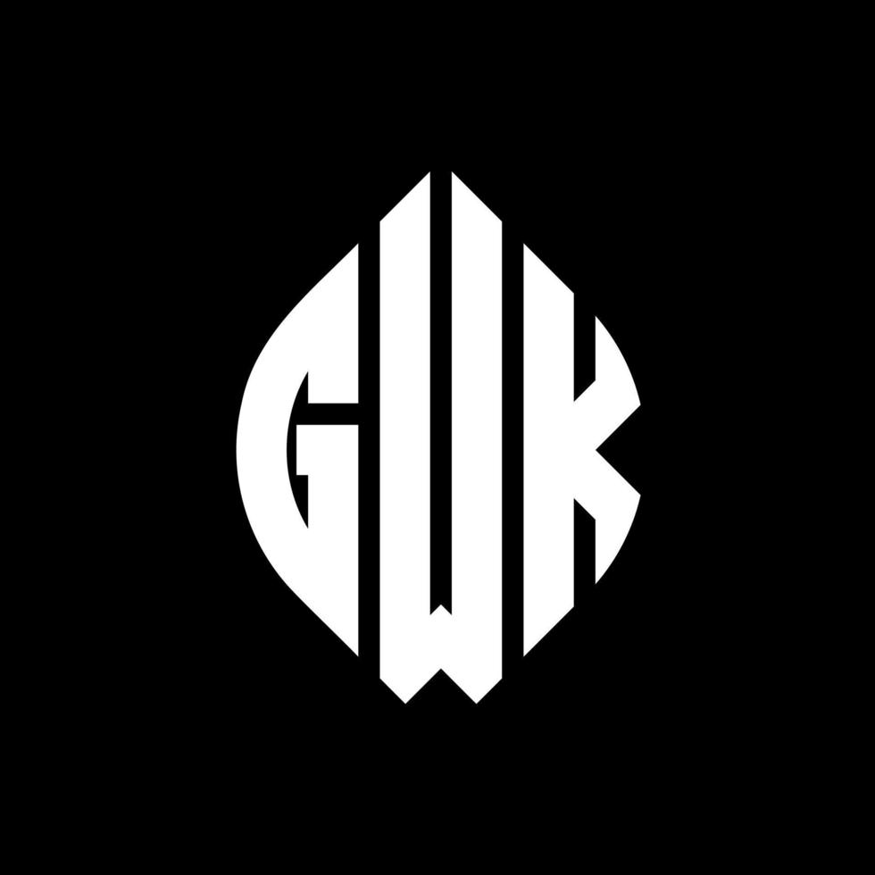 GWK circle letter logo design with circle and ellipse shape. GWK ellipse letters with typographic style. The three initials form a circle logo. GWK Circle Emblem Abstract Monogram Letter Mark Vector. Pro Vector