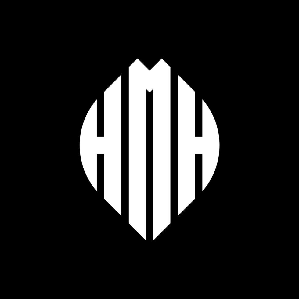 HMH circle letter logo design with circle and ellipse shape. HMH ellipse letters with typographic style. The three initials form a circle logo. HMH Circle Emblem Abstract Monogram Letter Mark Vector. Pro Vector