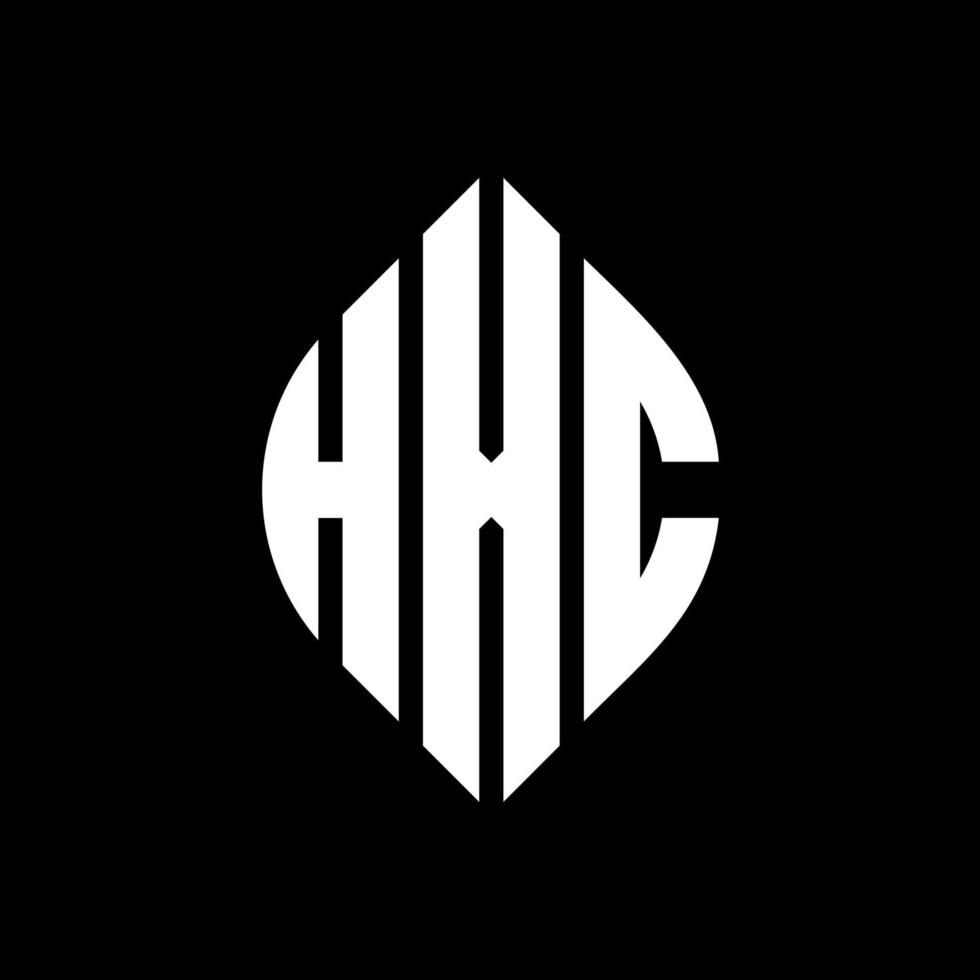 HXC circle letter logo design with circle and ellipse shape. HXC ellipse letters with typographic style. The three initials form a circle logo. HXC Circle Emblem Abstract Monogram Letter Mark Vector. Pro Vector