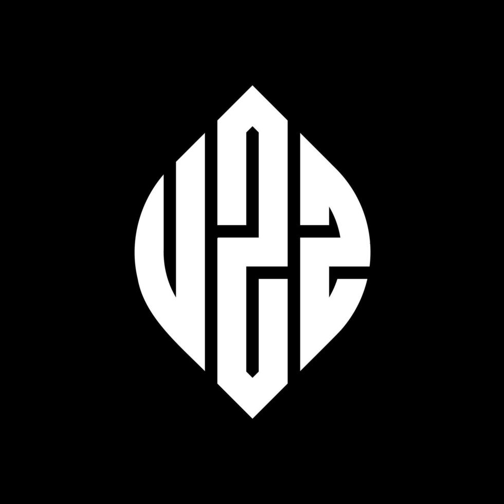 UZZ circle letter logo design with circle and ellipse shape. UZZ ellipse letters with typographic style. The three initials form a circle logo. UZZ Circle Emblem Abstract Monogram Letter Mark Vector. Pro Vector