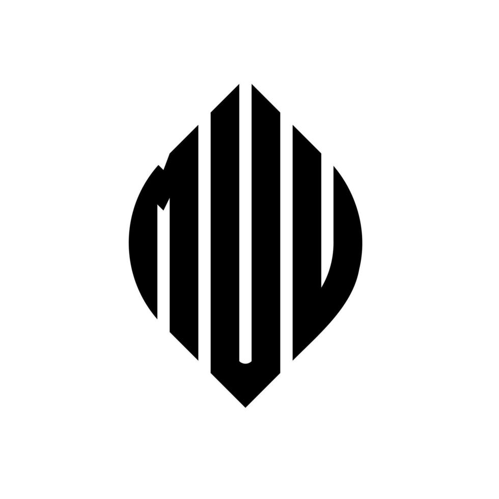 MUU circle letter logo design with circle and ellipse shape. MUU ellipse letters with typographic style. The three initials form a circle logo. MUU Circle Emblem Abstract Monogram Letter Mark Vector. Pro Vector