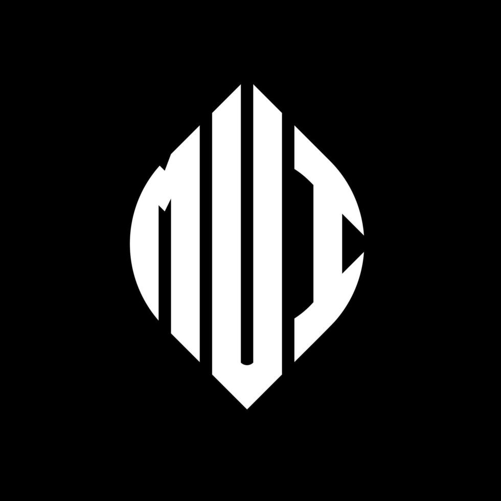 MUI circle letter logo design with circle and ellipse shape. MUI ellipse letters with typographic style. The three initials form a circle logo. MUI Circle Emblem Abstract Monogram Letter Mark Vector. Pro Vector