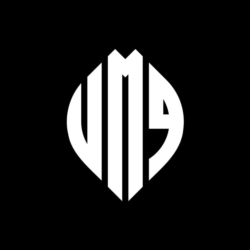 UMQ circle letter logo design with circle and ellipse shape. UMQ ellipse letters with typographic style. The three initials form a circle logo. UMQ Circle Emblem Abstract Monogram Letter Mark Vector. Pro Vector