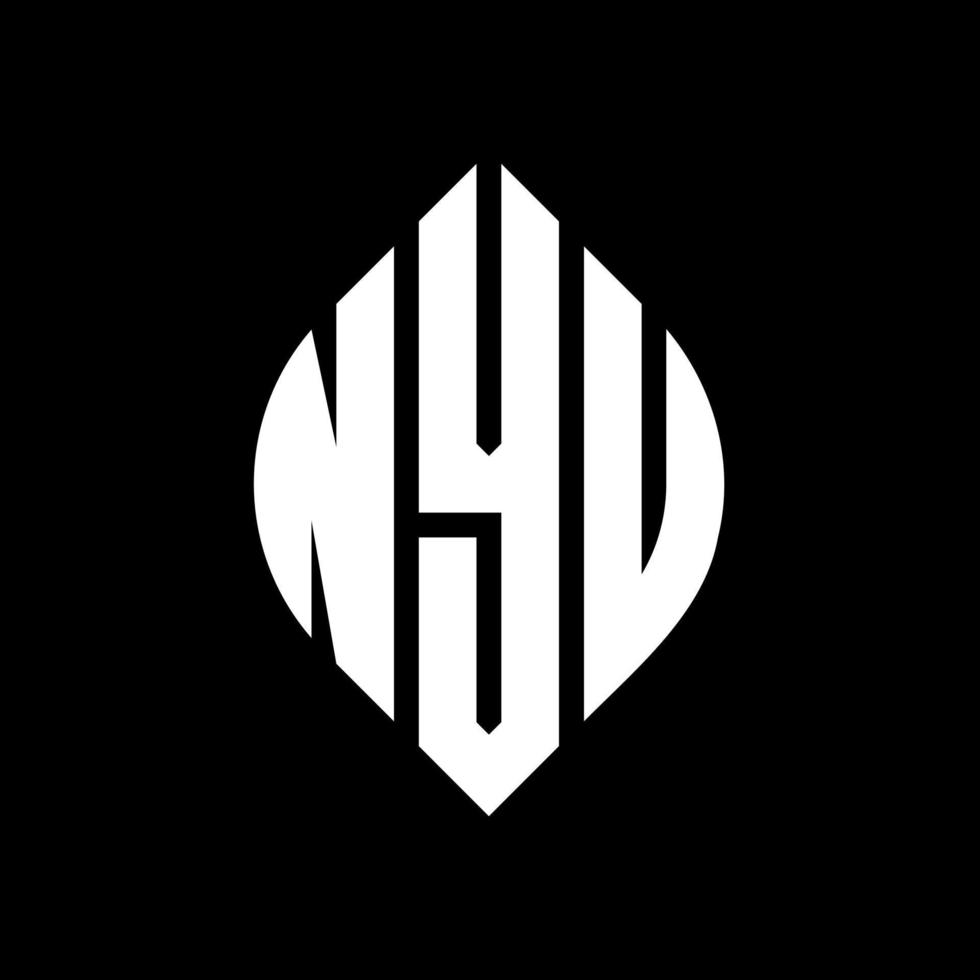NYU circle letter logo design with circle and ellipse shape. NYU ellipse letters with typographic style. The three initials form a circle logo. NYU Circle Emblem Abstract Monogram Letter Mark Vector. Pro Vector