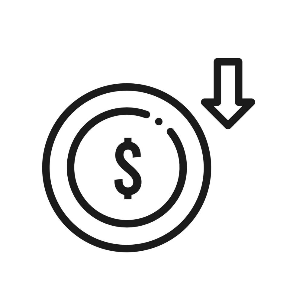 dollar bill icon with an arrow pointing down which means a decrease in the value of the dollar bill Pro Vector and Pro SVG