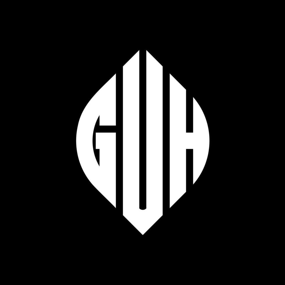 GUH circle letter logo design with circle and ellipse shape. GUH ellipse letters with typographic style. The three initials form a circle logo. GUH Circle Emblem Abstract Monogram Letter Mark Vector. Pro Vector