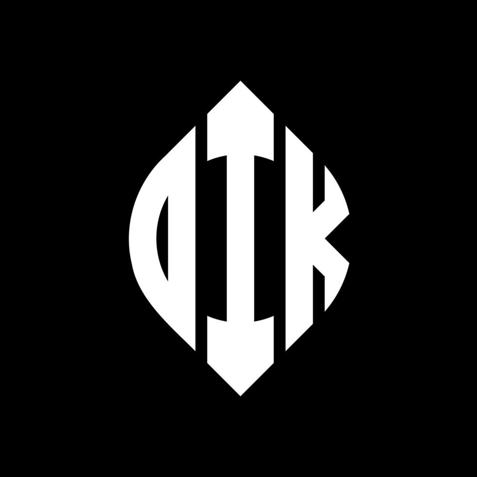 DIK circle letter logo design with circle and ellipse shape. DIK ellipse letters with typographic style. The three initials form a circle logo. DIK Circle Emblem Abstract Monogram Letter Mark Vector. Pro Vector