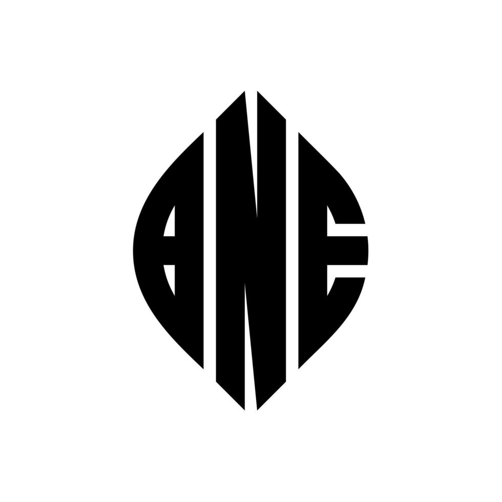 BNE circle letter logo design with circle and ellipse shape. BNE ellipse letters with typographic style. The three initials form a circle logo. BNE Circle Emblem Abstract Monogram Letter Mark Vector. Pro Vector