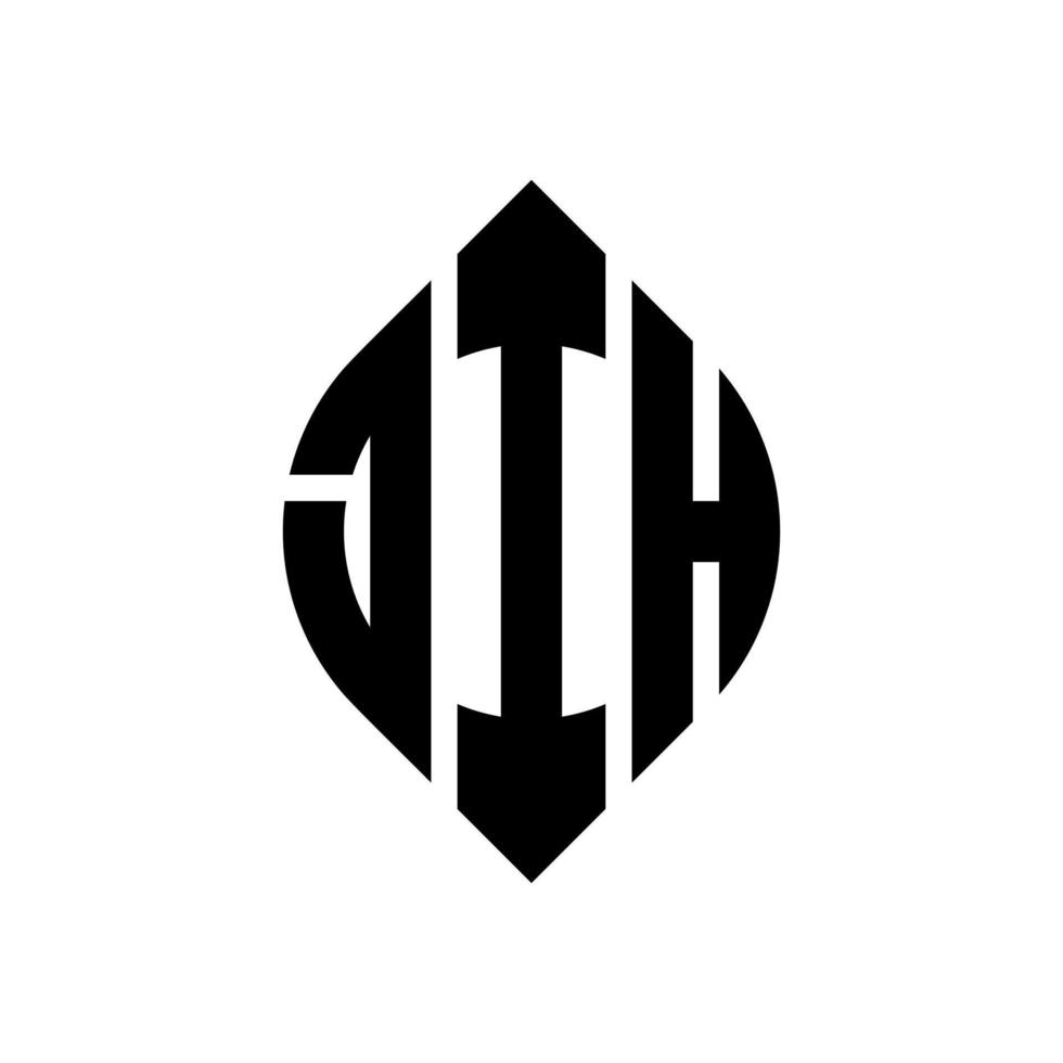 JIH circle letter logo design with circle and ellipse shape. JIH ellipse letters with typographic style. The three initials form a circle logo. JIH Circle Emblem Abstract Monogram Letter Mark Vector. Pro Vector