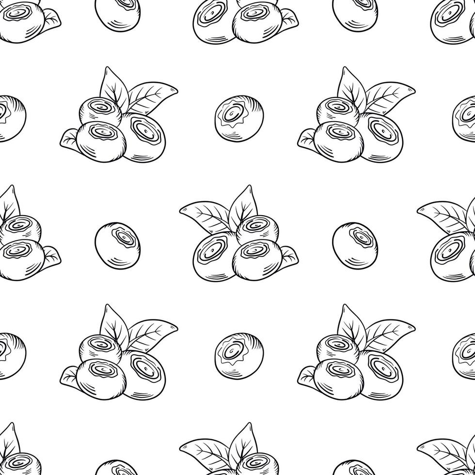 Vector pattern with blueberries. Blueberry berries with twigs of leaves in a hand-drawn style. A sketch with a black line, a collection of berries on a white background. Botanical illustration Pro Vector