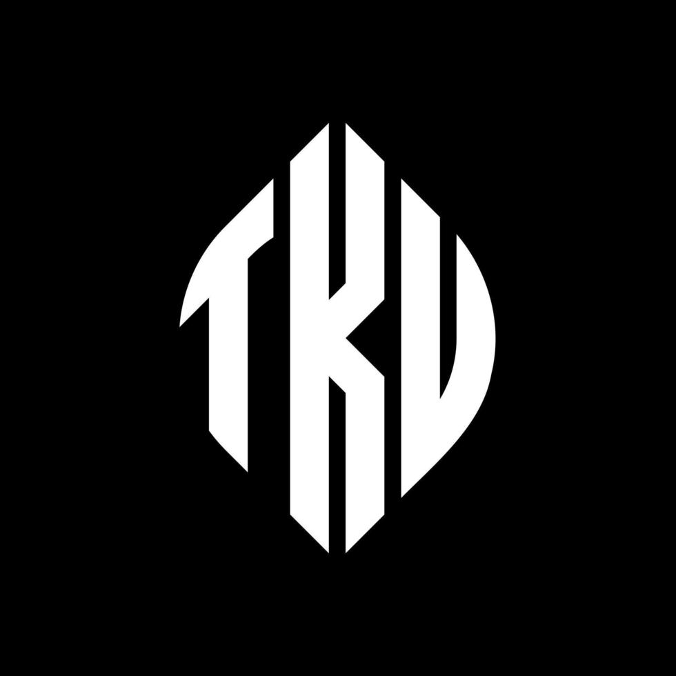 TKU circle letter logo design with circle and ellipse shape. TKU ellipse letters with typographic style. The three initials form a circle logo. TKU Circle Emblem Abstract Monogram Letter Mark Vector. Pro Vector