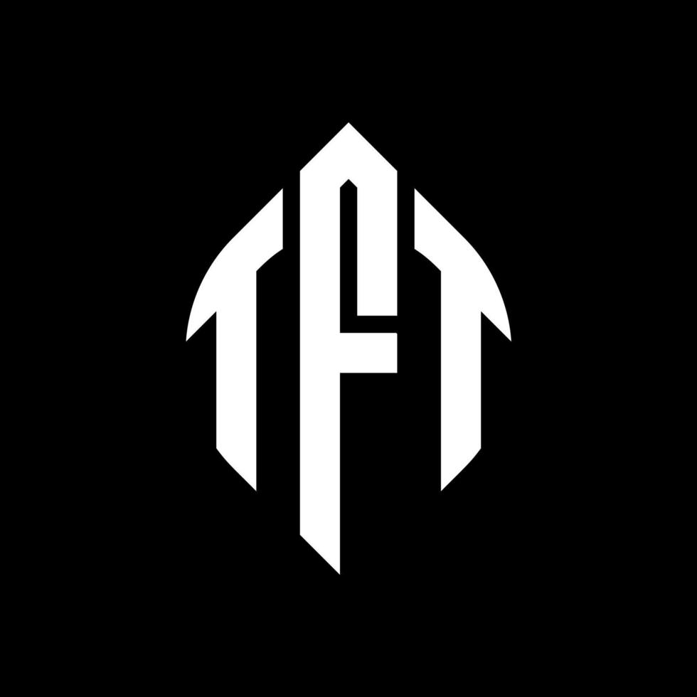 TFT circle letter logo design with circle and ellipse shape. TFT ellipse letters with typographic style. The three initials form a circle logo. TFT Circle Emblem Abstract Monogram Letter Mark Vector. Pro Vector