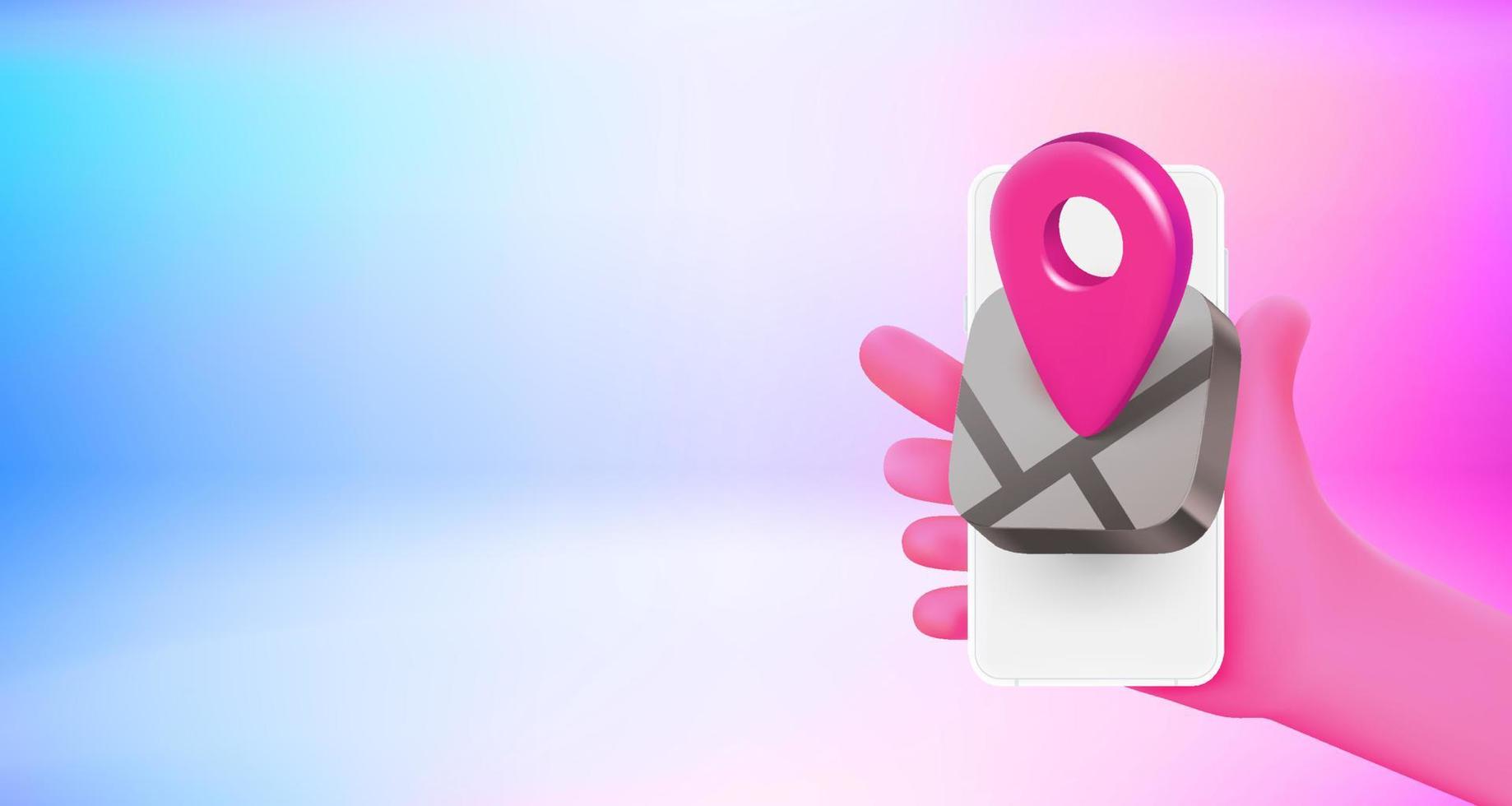 Using navigation application on mobile phone. 3d vector banner with copy space Pro Vector