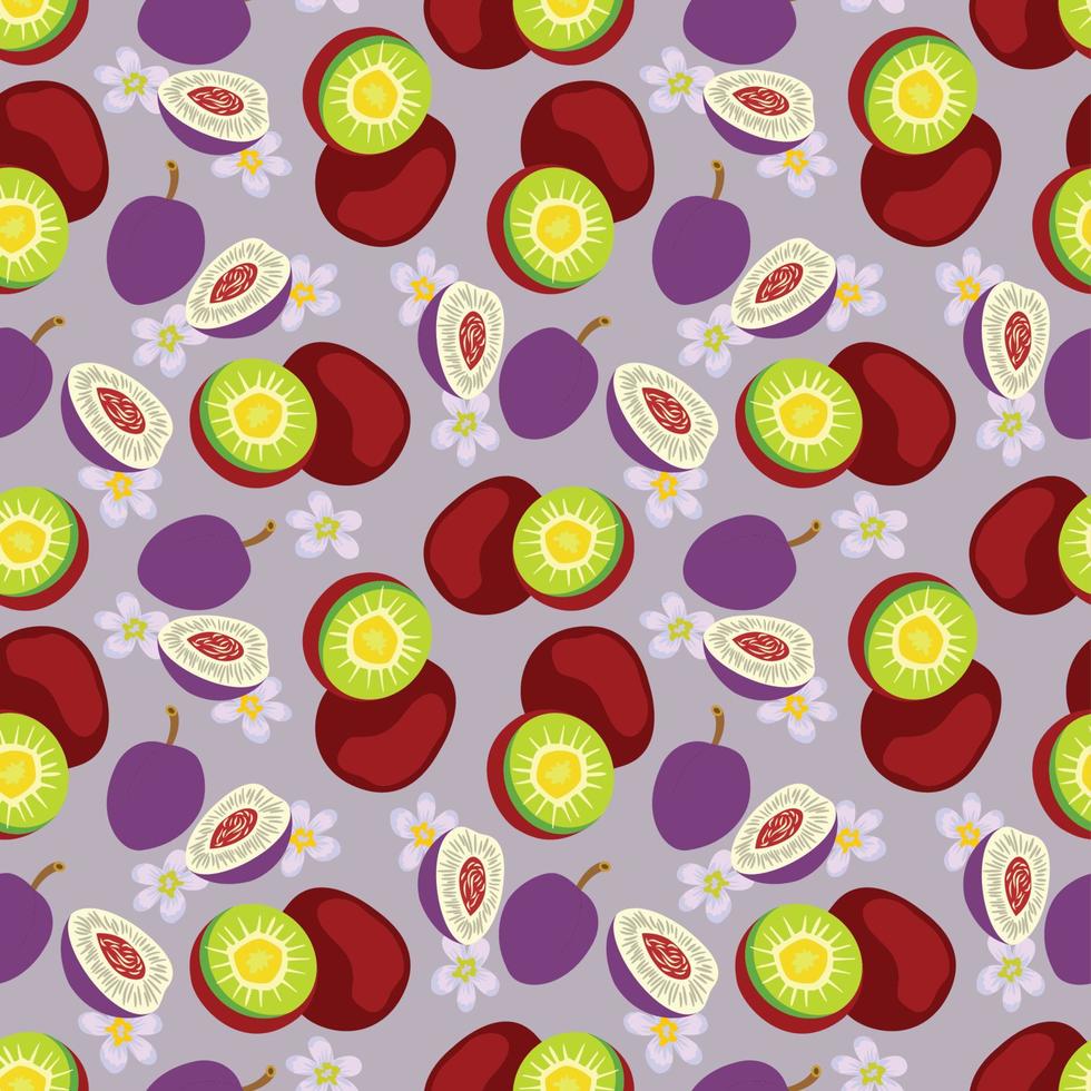 Seamless background with a pattern of ripe delicious sliced kiwi. Seamless pattern texture design. vector