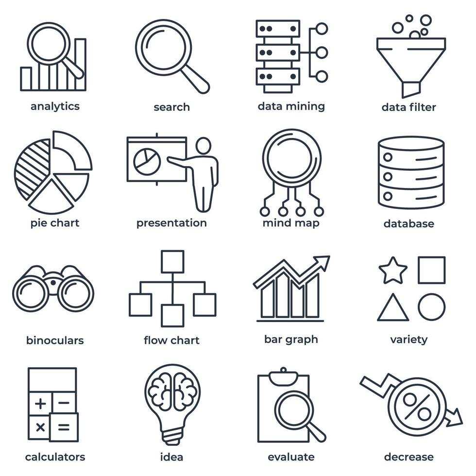 Set of Data analysis icon logo vector illustration. Data Analysis pack symbol template for graphic and web design collection Pro Vector