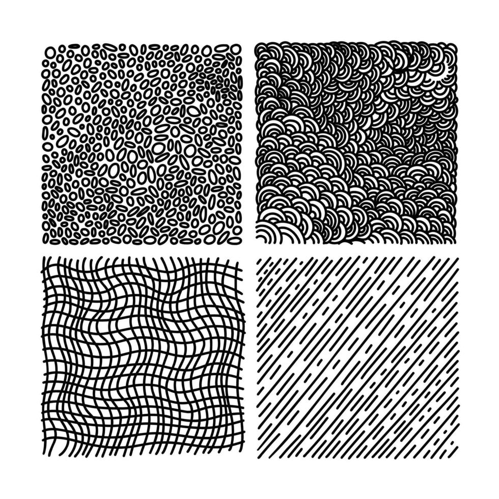 Hand drawn vector textures with different shapes. Abstract vector backgrounds with dots, lines, stripes, and strokes in black and white Pro Vector