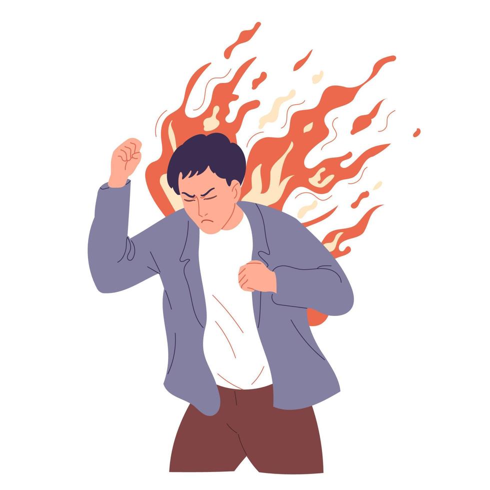 Man is too angry, seized with fury, burst of rage. Pro Vector