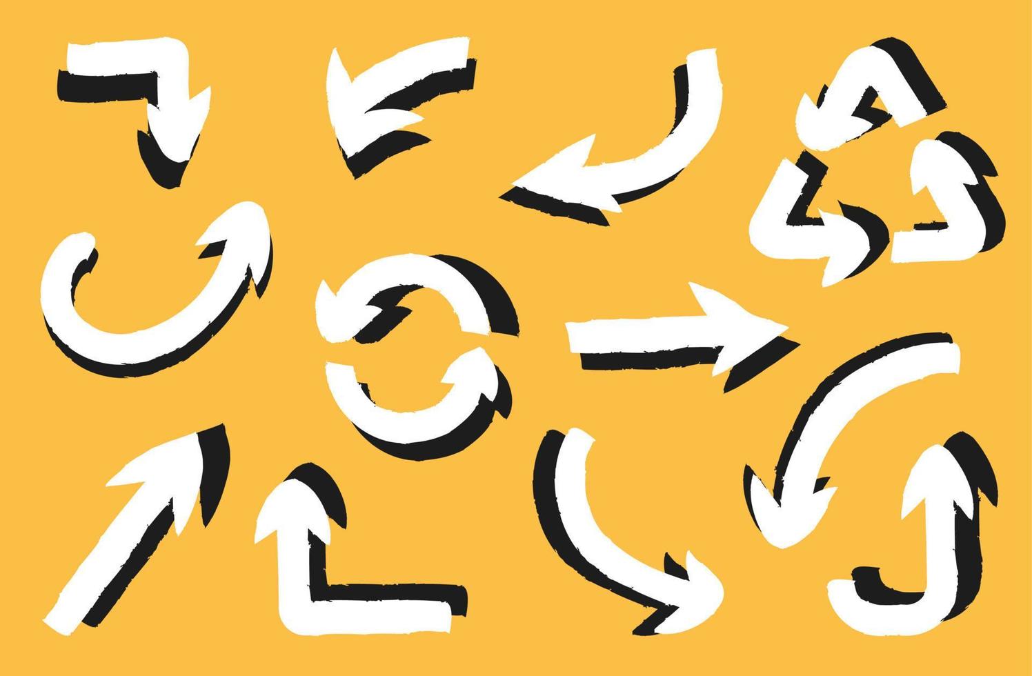Set of Graphic Textured Arrows with Shadow Grunge Pointers Design Elements. Pro Vector