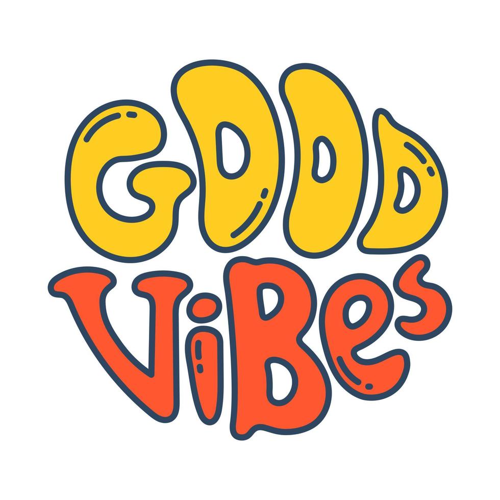 Vector hand written Good Vibes lettering. Retro text Good Vibes in circle shape. 70s. Pro Vector