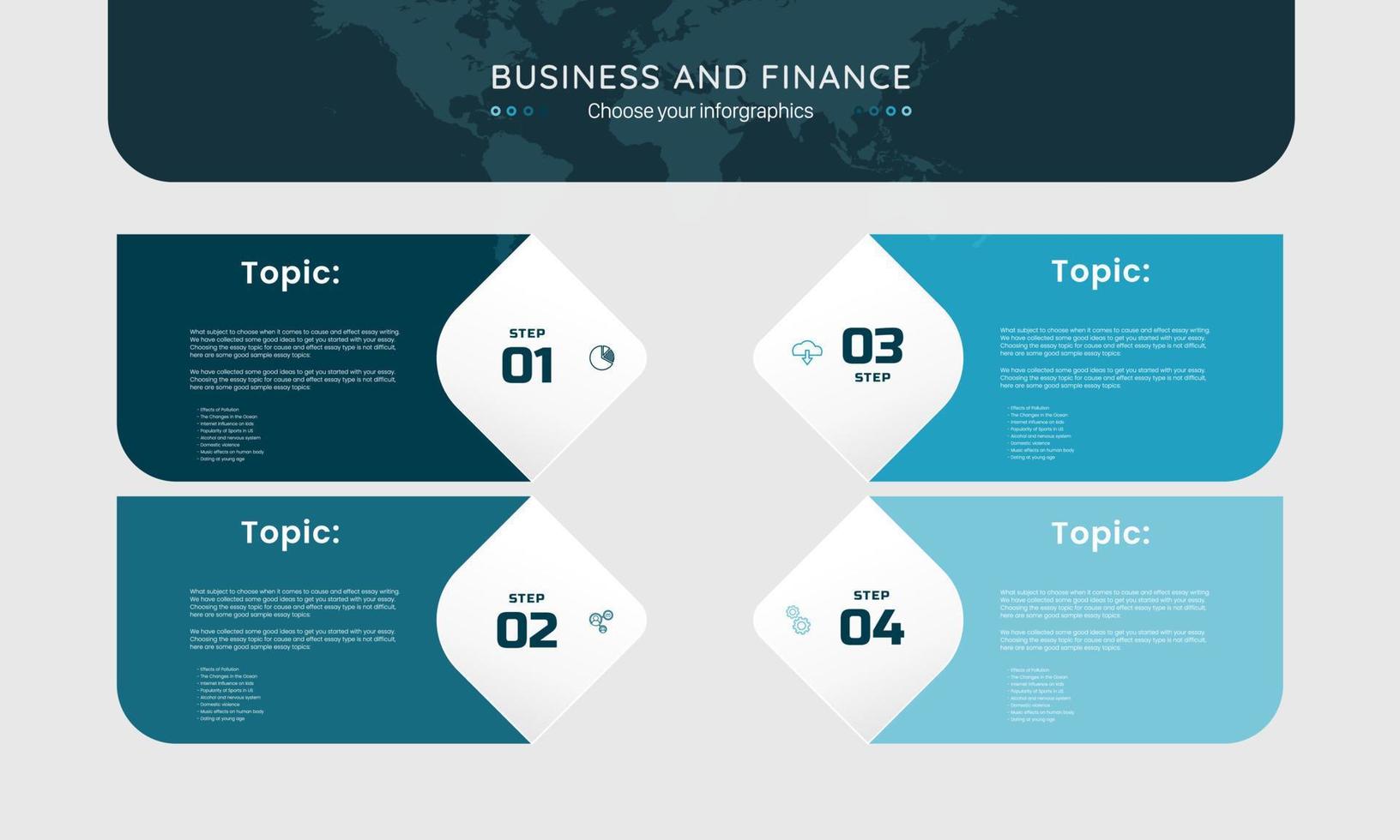 Modern Four paper white overlapping placed in horizontal row. Concept of 4 successive steps of progressive business development. Simple infographic design template. Abstract vector illustration Free Vector