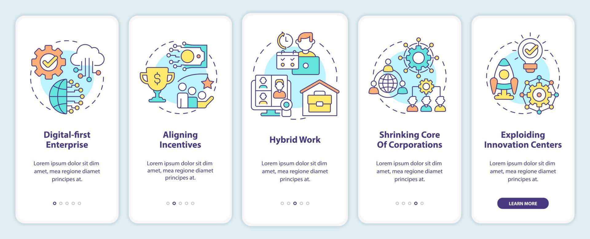 Trends in enterprise onboarding mobile app screen. Business development walkthrough 5 steps graphic instructions pages with linear concepts. UI, UX, GUI template Pro Vector