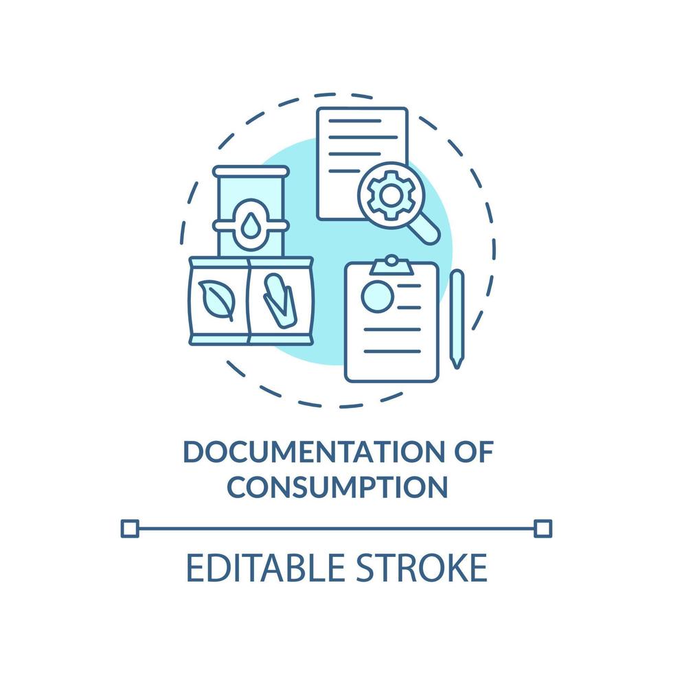 Documentation of consumption turquoise concept icon. Cleaner production option abstract idea thin line illustration. Isolated outline drawing. Editable stroke. Pro Vector