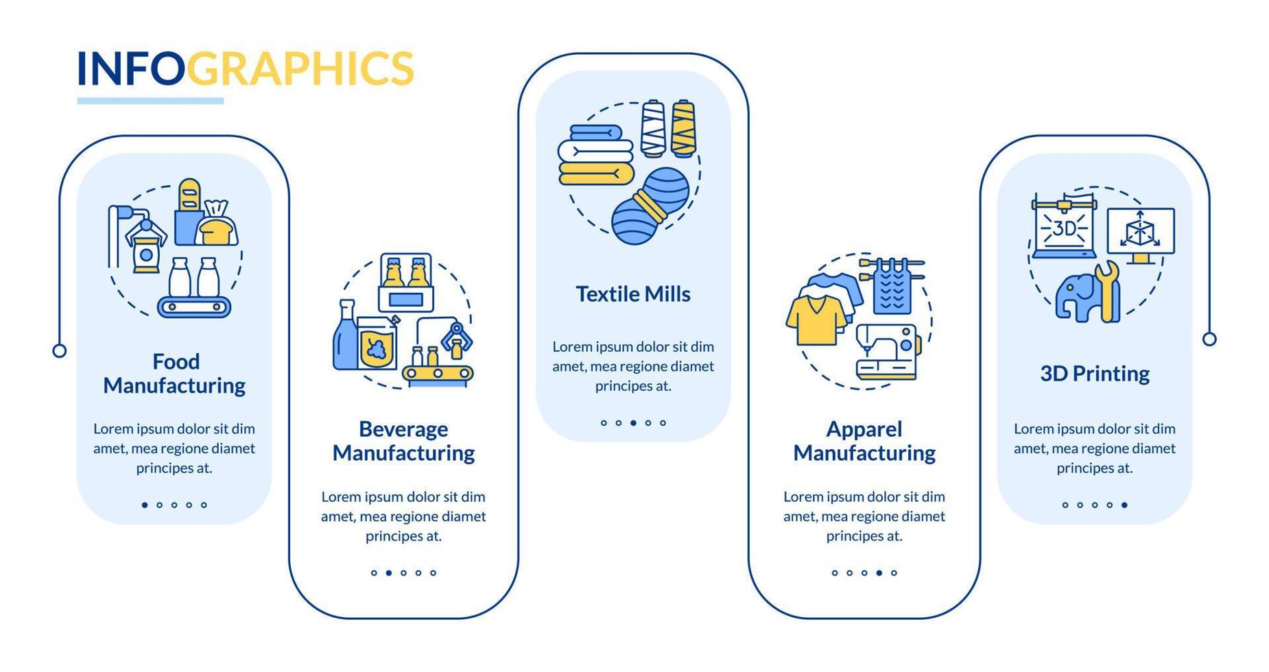 Manufacturing sub sectors rectangle infographic template. Data visualization with 5 steps. Process timeline info chart. Workflow layout with line icons. Pro Vector