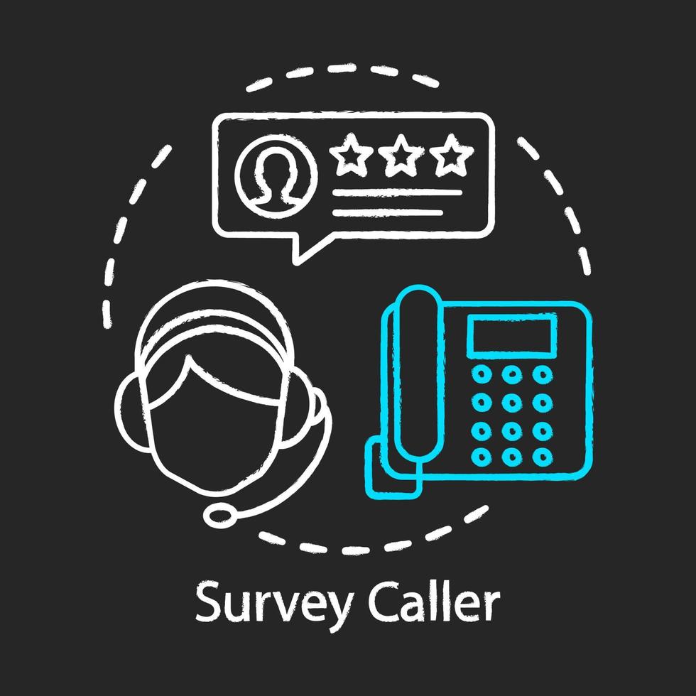 Survey caller chalk icon. Call center agent. Operator with headset, consultant manager. Client services and communication. Automated phone surveys. Isolated vector chalkboard illustration Pro Vector