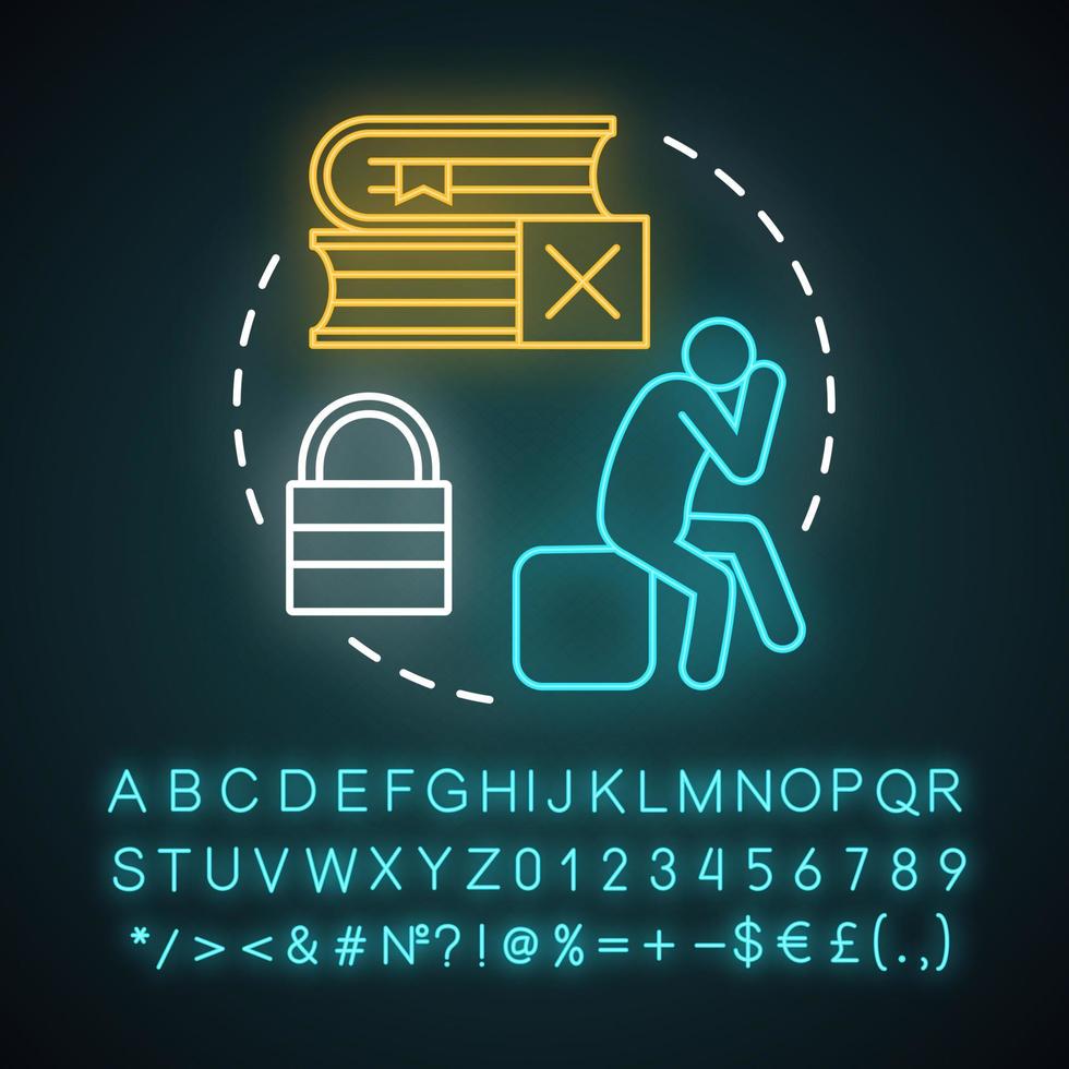 Learning problems neon light concept icon. Difficulties. I can't do it. Failed test. Challenge, solution search idea. Glowing sign with alphabet, numbers and symbols. Vector isolated illustration Pro Vector