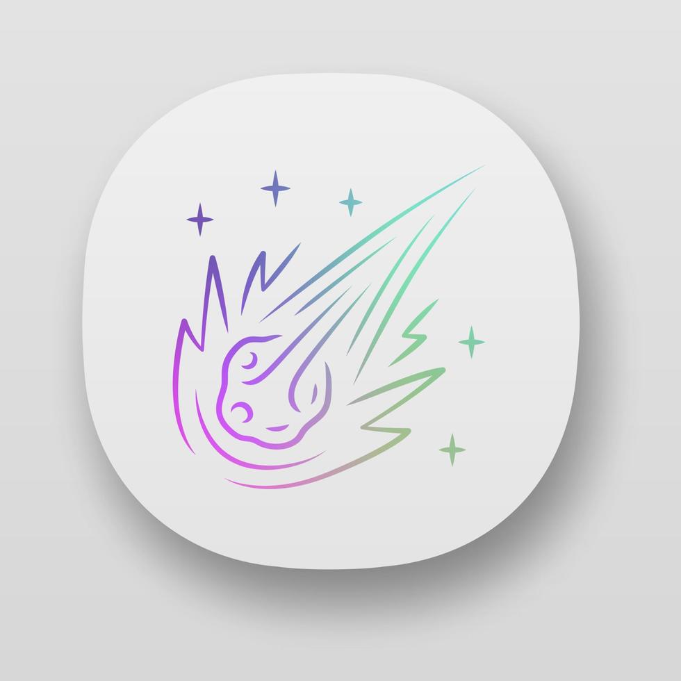 Comet app icon. Falling star. Meteor, asteroid. Bright celestial object. Fireball. Atmospheric meteorite. Star shape. UI UX user interface. Web or mobile applications. Vector isolated illustrations Pro Vector