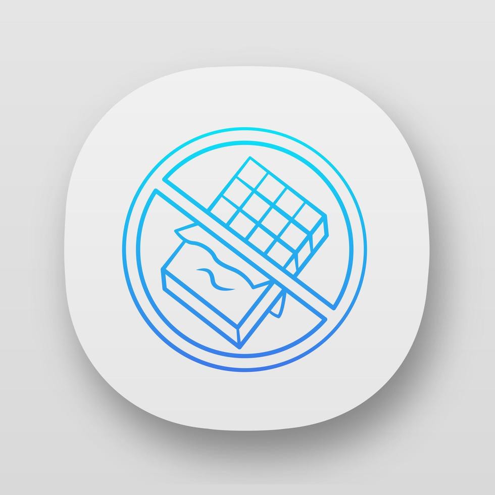 Chocolate free food app icon. No sugar, sweetener and glucose sign. UI UX user interface. Zero calories, diabetic diet. Web or mobile application. No chocolate bar vector isolated illustration Pro Vector