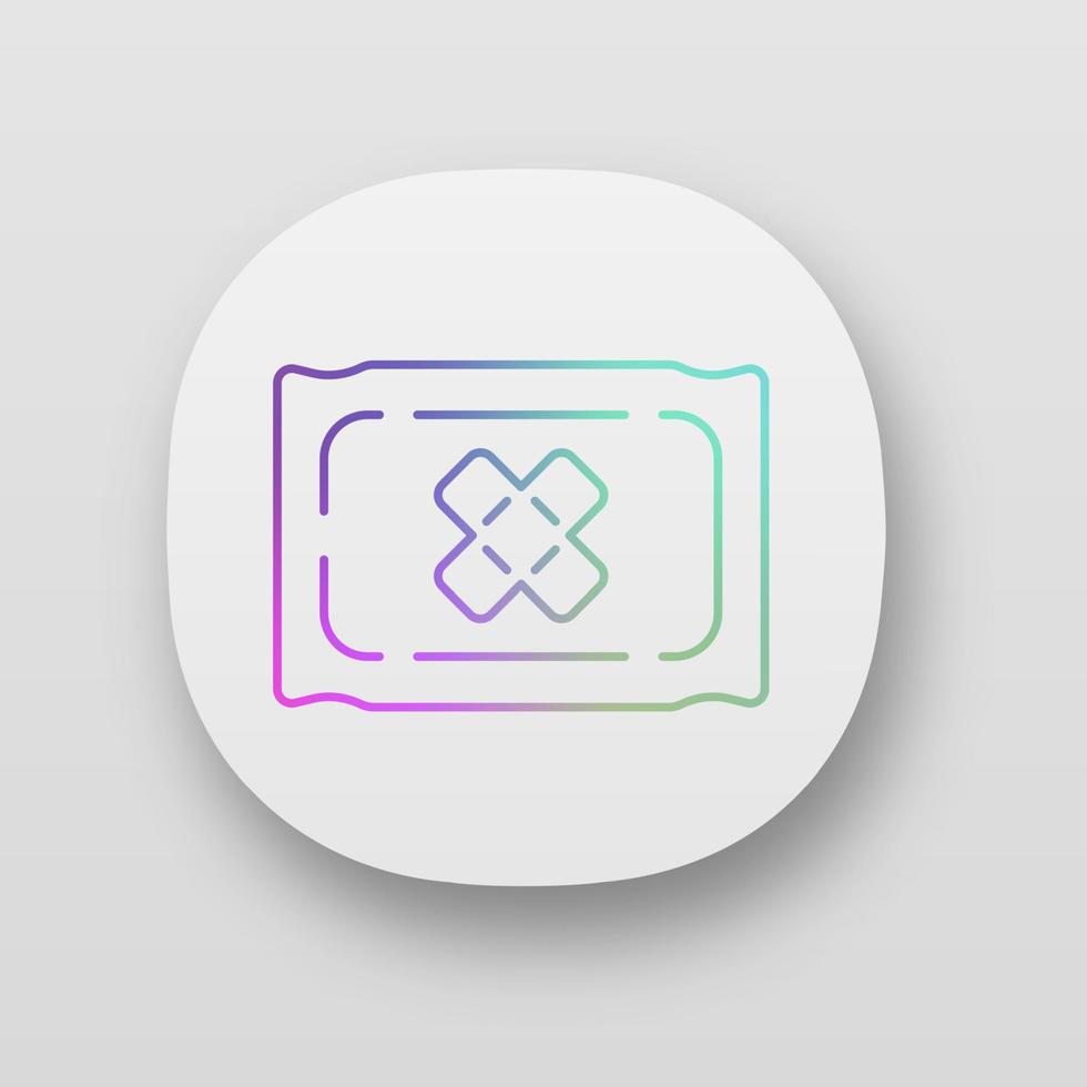 Bandage app icon. Virtual video game inventory. Medical first aid kit plaster, patch for player. Trauma, injury treatment. UI UX user interface. Web or mobile application. Vector isolated illustration Pro Vector