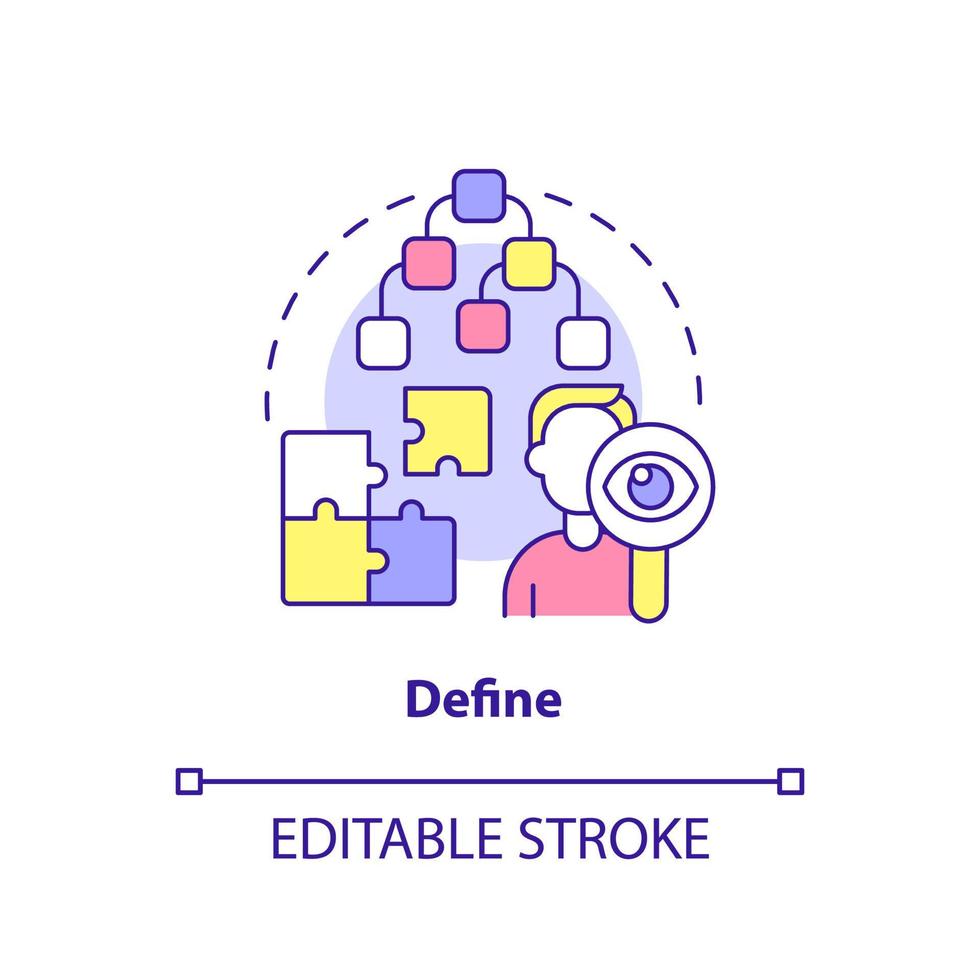 Define concept icon. Analysing information. Design thinking process abstract idea thin line illustration. Isolated outline drawing. Editable stroke. Pro Vector