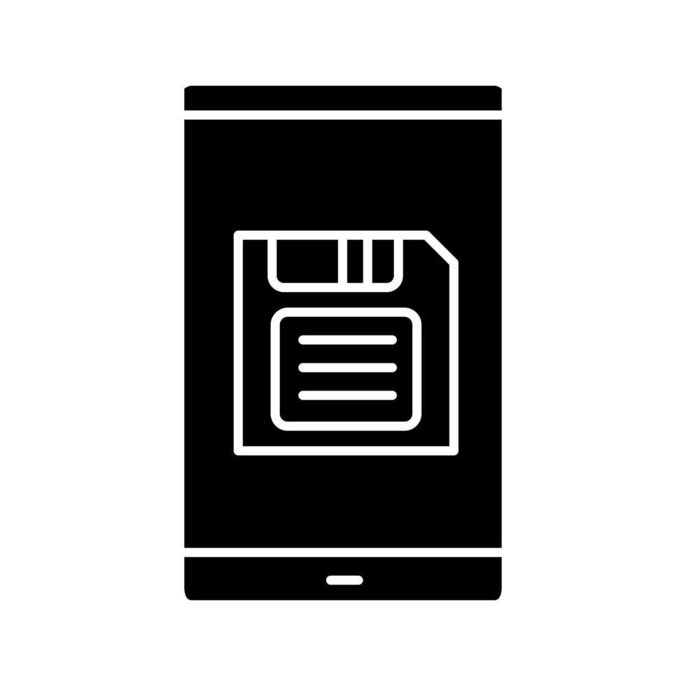 Smartphone screen with save button glyph icon. Silhouette symbol. Data saving. Negative space. Vector isolated illustration Pro Vector